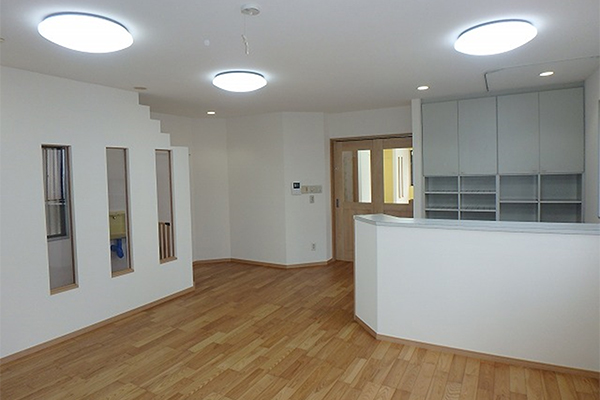 | 戸建て兼店舗の住宅部分3階の和室、LDKのリフォーム工事の写真です。 工事の内容は、和室撤去、LDK拡幅、床長尺シート張り、クロス張替え、照明器具交換工事等でした。 お客様のご依頼では、新しいペットを出迎えるのに和室を撤去しLDKを拡幅し、ペットが走り回れるようにしたい、また、床仕上げは滑りにくい長尺シートをご選定頂きました。 とても解放的な空間となりました。 |